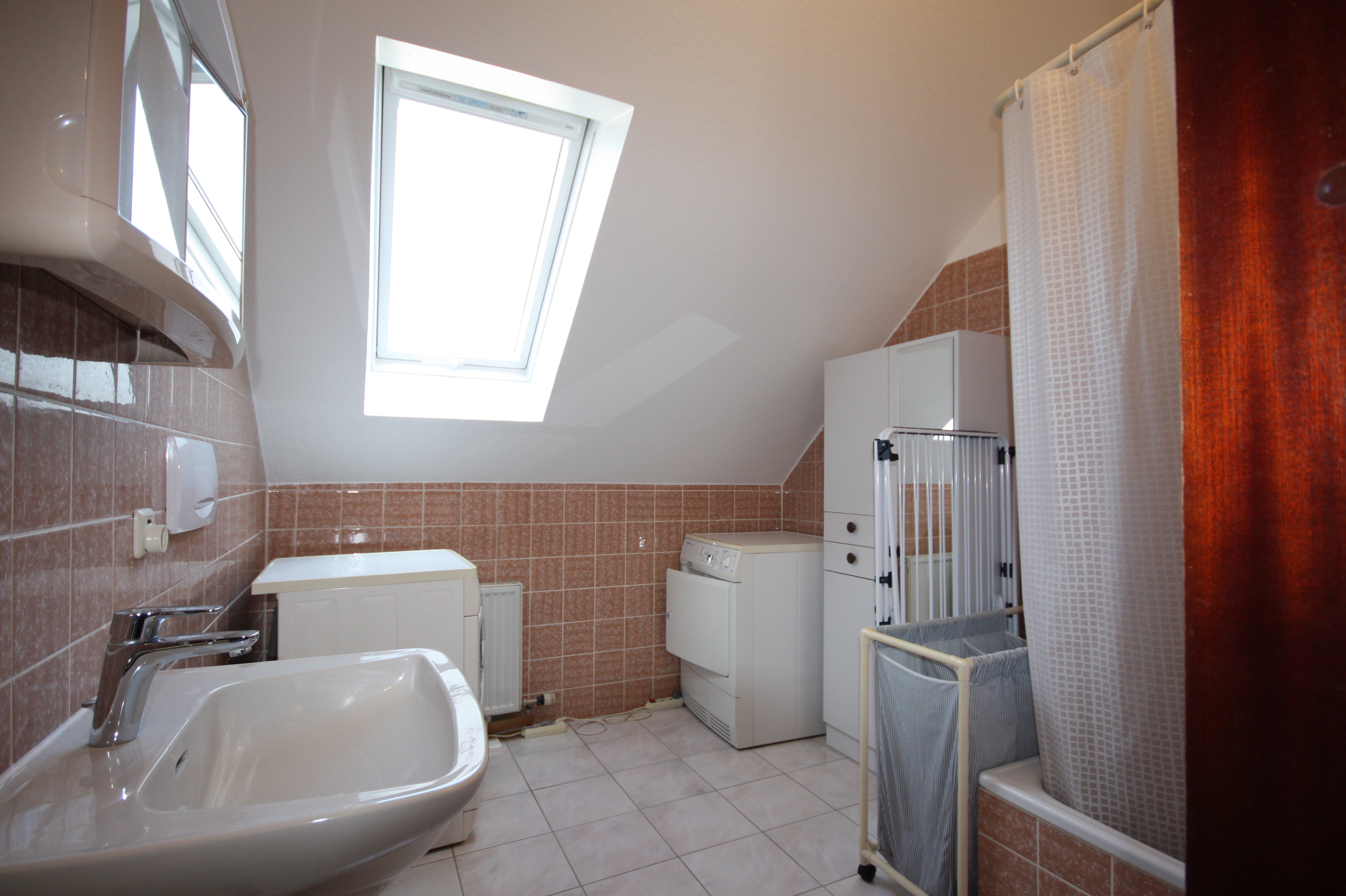 Waschbecken|Dusche|Fenster|viel Stauraum|viel Ablagefläche; Trockner, Waschmaschine.